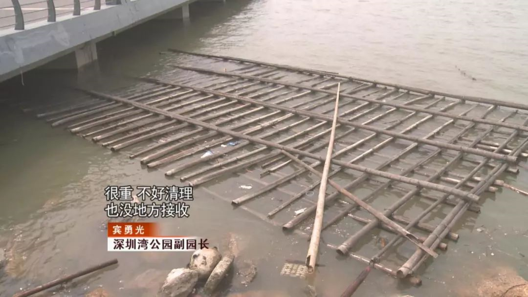 《第一現(xiàn)場(chǎng)》記者立馬跟進(jìn),找到了公園管理方。管理方表示,其實(shí)我們看到的才只是一小處,深圳灣沿岸十幾公里的范圍,每天都有不少竹排飄過來,不!過!??!這些竹排卻不!是!源!自!深!圳!