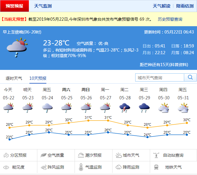 鵬城進入“降雨模式”今日最低溫徘徊在23℃左右