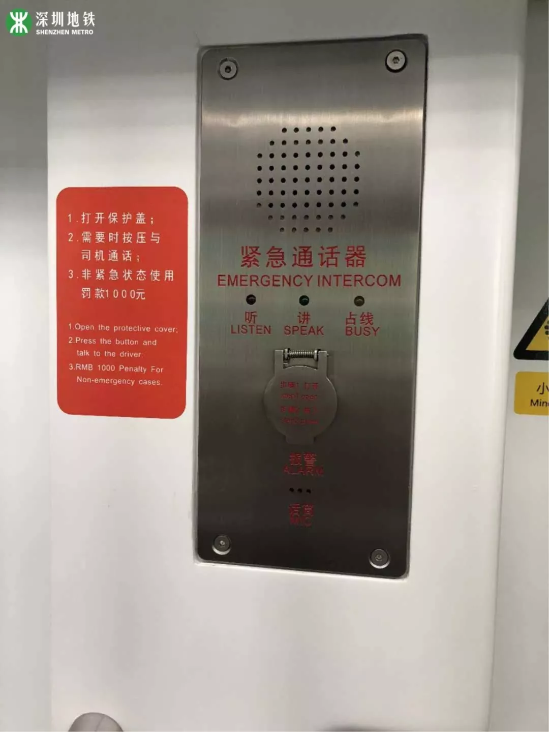 列車內(nèi)配備了司機(jī)對講裝置,若車廂內(nèi)發(fā)生事故,可第一時間通報列車司機(jī)。