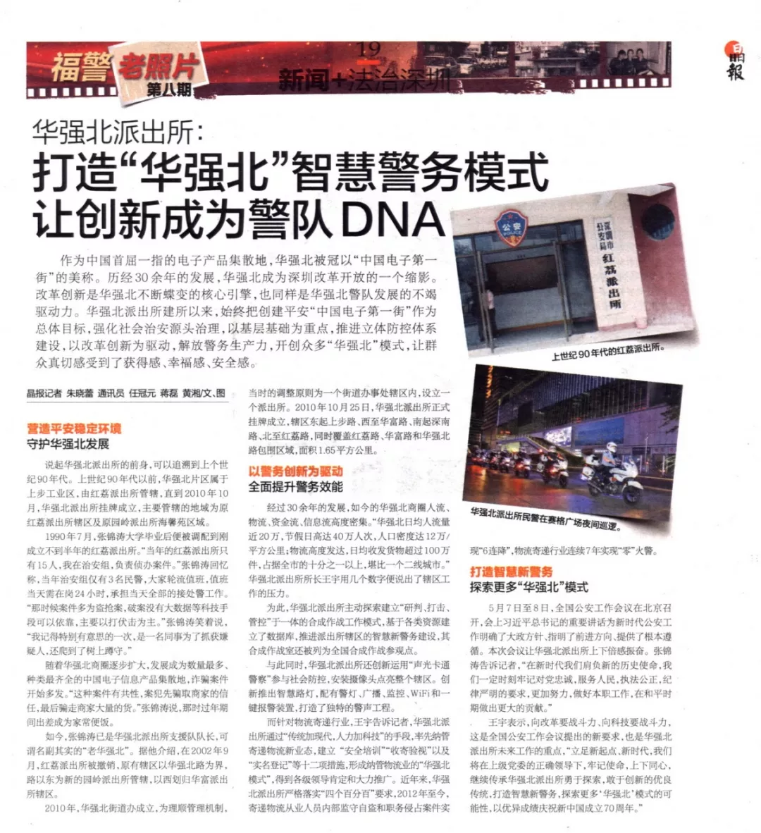 如今,張錦濤已是華強(qiáng)北派出所支援隊隊長,可謂名副其實(shí)的“老華強(qiáng)北”。據(jù)他介紹,在2002年9月,紅荔派出所被撤銷,原有轄區(qū)以華強(qiáng)北路為界,路以東為新的園嶺派出所管轄,以西劃歸華富派出所轄區(qū)。