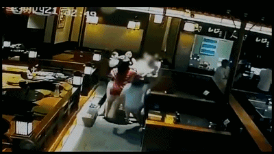 從監(jiān)控畫面可以看到,一名身穿白色上衣的男子先是打了一名女子一巴掌并踹了一腳,后來(lái)又對(duì)其他兩名女子動(dòng)手,而這三名女子正是余小姐和她的兩名朋友。