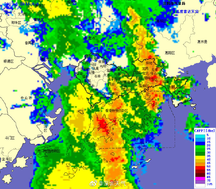 目前強(qiáng)降水中心已移至我市中部地區(qū),未來1-2小時(shí)內(nèi)東部地區(qū)將出現(xiàn)20-40毫米降水,深圳市氣象臺(tái)于2019年05月28日09時(shí)15分將暴雨黃色預(yù)警擴(kuò)展至全市,全市進(jìn)入暴雨戒備狀態(tài),請(qǐng)注意防范。