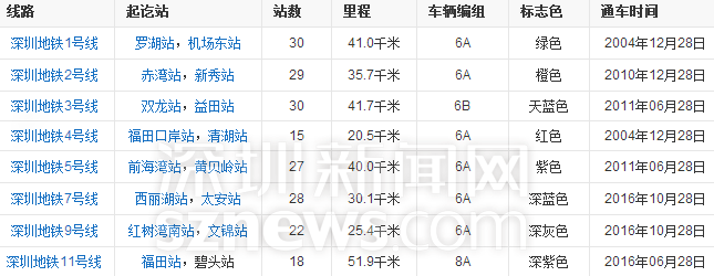深圳地鐵目前正在運(yùn)營(yíng)的線(xiàn)路信息↑