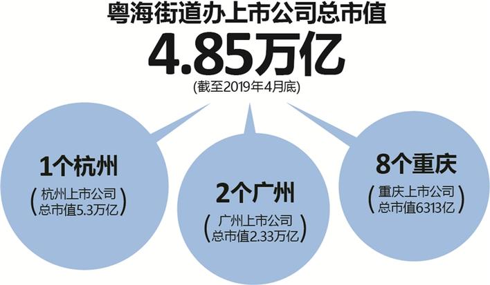 有媒體統(tǒng)計顯示,在粵海街道這個開車10分鐘就能逛一圈的“彈丸之地”,有112家公司屬于粵海街道辦,包括4月底市值超過3萬億元人民幣的騰訊控股,中國恒大、華潤置地、騰訊音樂、邁瑞醫(yī)療、中興通訊等5家千億市值公司,以及大族激光、深信服、金蝶國際等近20家百億市值公司。截至到今年4月底,A股、H股和美股上市的深圳市粵海街道辦上市公司有多達(dá)112家,總市值達(dá)到了4.85萬億元,而杭州市全市的上市公司總市值為5.3萬億元。