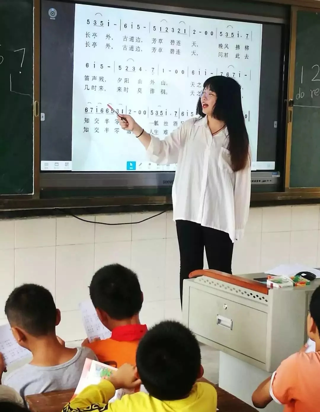 由于資源的缺乏,在平時(shí)的課堂中沒(méi)有專業(yè)老師及樂(lè)器去幫助他們糾正發(fā)音及音準(zhǔn)問(wèn)題,只能憑借自己的感覺(jué)去唱歌。但在整節(jié)課的教學(xué)中,我發(fā)現(xiàn)部分孩子還是有很好的音準(zhǔn)意識(shí),會(huì)盡量模仿老師發(fā)音去唱譜。如果能得到更多更好的教學(xué)資源,相信孩子們會(huì)更加熱愛(ài)音樂(lè)。