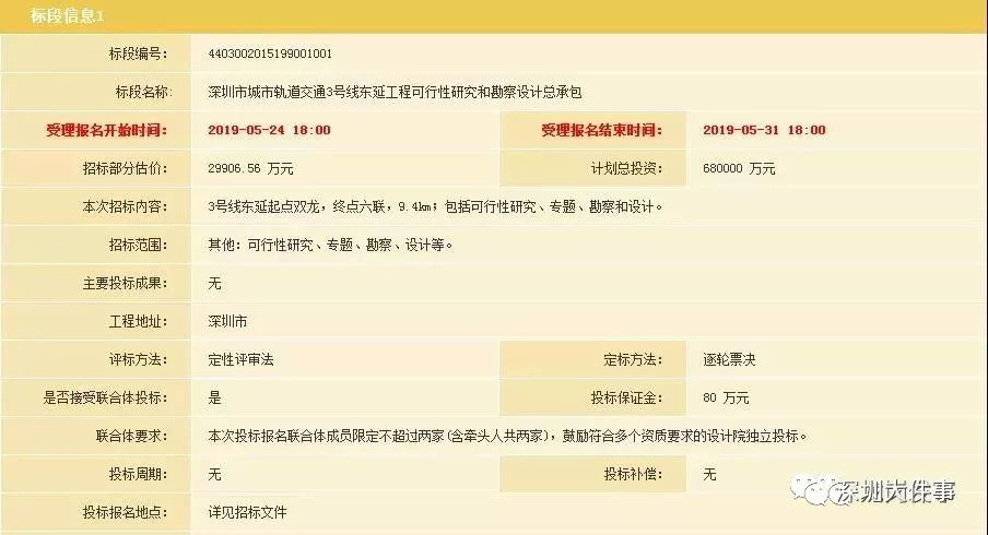 2019年5月24日,深圳市住房和建設(shè)局公布《深圳市城市軌道交通3號線東延工程可行性研究和勘察設(shè)計總承包》招標公告。