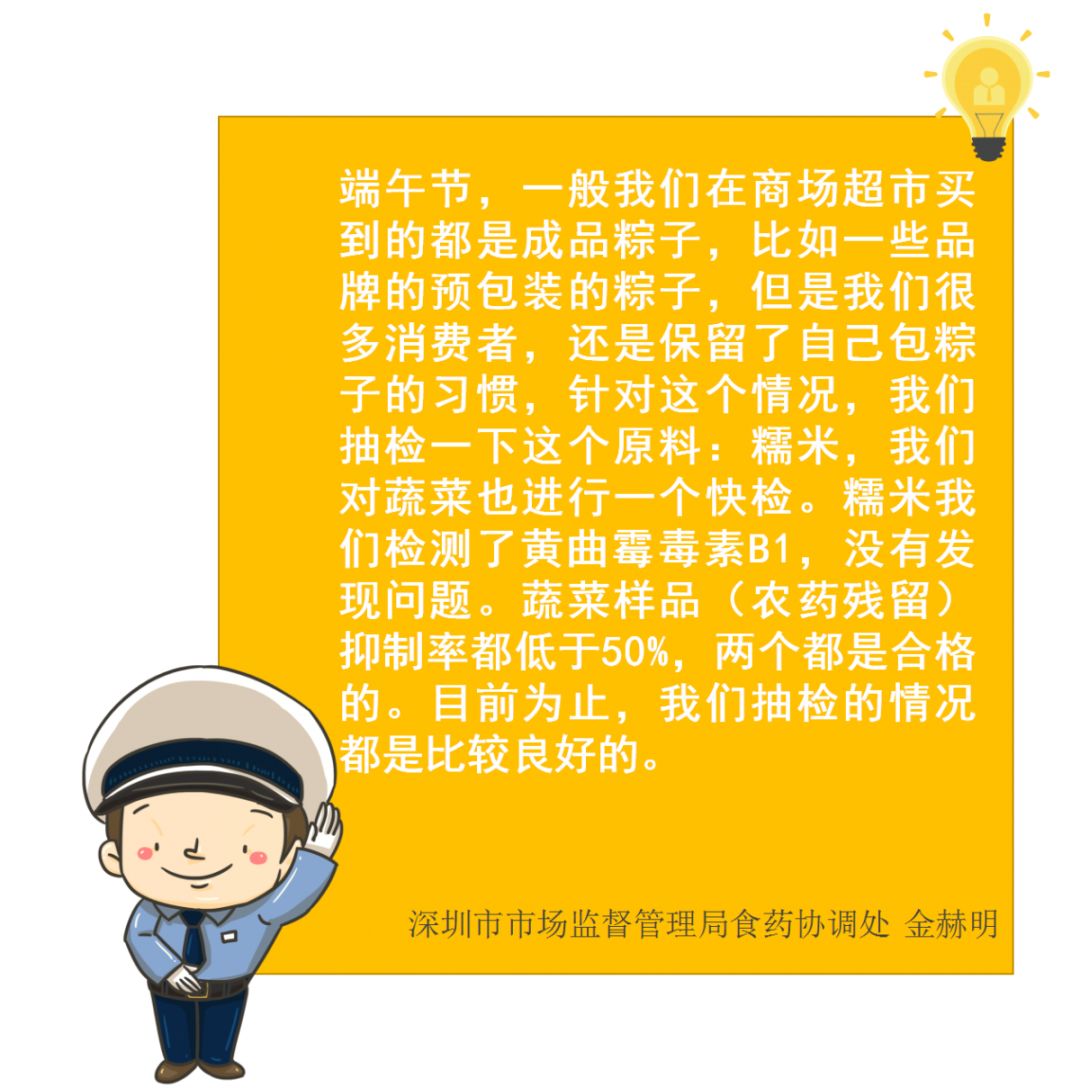一年一度端午“粽”動(dòng)員時(shí)刻到! 現(xiàn)在是不是想品嘗粽子的美味了? 肉粽肥瘦恰當(dāng)?shù)娜澫?/p> 蛋黃粽蛋黃留油的鮮潤 白粽沾綿糖的甜醇...... 于是總會(huì)來一場 甜咸粽黨battle 而有職業(yè)病的食安君只想關(guān)注安不安全 先關(guān)注下本期的【食安周報(bào)】 2019年食品安全抽樣檢驗(yàn)情況通報(bào) (第二十一期) 本次共抽檢生產(chǎn)、流通、餐飲環(huán)節(jié)應(yīng)節(jié)食品(粽子)200批次,涉及經(jīng)營主體123家次,共檢測食品指標(biāo)1738項(xiàng)次,全部檢測合格。 全部合格 深圳的小伙伴 看完這個(gè)抽檢 吃起粽子來,就更安心啦~ 抽檢現(xiàn)場 針對(duì)應(yīng)節(jié)食品粽子 執(zhí)法人員進(jìn)行兩個(gè)方面的檢查 戳視頻直擊檢查現(xiàn)場 現(xiàn)場還對(duì)制作粽子原料糯米 還有蔬菜進(jìn)行快檢 糯米我們檢測了黃曲霉毒素B1 沒有發(fā)現(xiàn)問題 蔬菜樣品(農(nóng)藥殘留)抑制率都低于50% 兩個(gè)都是合格的 可以放心吃 但是你懂得怎么吃嗎? 食安君這就告訴你 吃粽子的正確姿勢? 食用過量粽子而引發(fā)消化不良的情況時(shí)常發(fā)生老人、小孩和有胃腸道基礎(chǔ)疾病的人 要格外注意! 粽子好吃但要適可而止 粽子選購秘籍 說起買粽子,食安君又要老生常談了,一定要通過正規(guī)渠道購買哦,不要購買路邊的“三無”粽子。 同時(shí)注意查看外包裝的食品標(biāo)簽,如生產(chǎn)日期、保質(zhì)期、生產(chǎn)者名稱和地址、成分或配料表、食品添加劑、食品生產(chǎn)許可證編號(hào)等標(biāo)識(shí)是否齊全;并仔細(xì)檢查粽子包裝是否完整,真空包裝是否漏氣漲袋,散裝粽子有無變質(zhì)現(xiàn)象等。 健康吃粽小貼士 1.粽子大多屬于高糖、高鹽、高能量食物,不宜過量食用,尤其是糖尿病、三高、肝膽等疾病患者,一定要控制食用量。 2.吃粽子時(shí),最好搭配一些蔬菜、湯羹等,既均衡營養(yǎng),又有助消化;同時(shí),盡量少蘸醬油、砂糖等調(diào)味料,這樣會(huì)增加鈉和糖的攝入,不利于健康。 粽子好吃不貪吃 上周,我們向市民發(fā)出了 “你點(diǎn)名,我們來抽檢”的倡議, 我們的食品安全快檢車就來到福田梅林 食品安全快檢車 最后 食安君還是要提醒大家 外出就餐要到證照齊全 環(huán)境衛(wèi)生的餐館 學(xué)會(huì)看“笑臉”選餐廳 不選擇無證或衛(wèi)生環(huán)境差的路邊攤 歡迎大家積極參與食品安全監(jiān)督工作 關(guān)注每周食品抽檢信息公布 欄目:食安周報(bào) 民以食為先,食以安為天,食品安全是社會(huì)各界最為關(guān)注的重點(diǎn)。深圳市市場監(jiān)管局聯(lián)合《第一現(xiàn)場》欄目推出《食安周報(bào)》欄目,發(fā)布食品安全權(quán)威信息,為市民帶來第一手食安資訊。 播出時(shí)間:每周二晚上7:30 播出平臺(tái):深圳廣電《第一現(xiàn)場》 每周抽檢信息通報(bào) 定期公布最新的食品及食用農(nóng)產(chǎn)品抽檢信息。 案件現(xiàn)場 直擊市市場監(jiān)管局執(zhí)法人員現(xiàn)場執(zhí)法,以案件解讀食品安全知識(shí),增強(qiáng)現(xiàn)場感。 食品安全科普 對(duì)食品安全相關(guān)知識(shí)進(jìn)行科普,回應(yīng)近期食品安全相關(guān)謠言,提示食品安全風(fēng)險(xiǎn)。 編輯整理:深圳食事藥聞 轉(zhuǎn)載請(qǐng)注明以上內(nèi)容