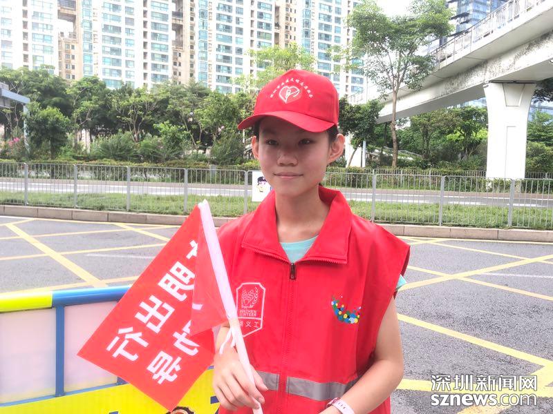 【南頭中學(xué)】南頭中學(xué)考點(diǎn)的小義工,百合外國語學(xué)校初一學(xué)生陳香凝,今天早上七點(diǎn)就早早過來為本次高考提供幫助。