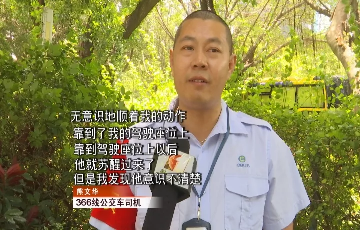 司機熊師傅密切關(guān)注倒地男乘客的情況