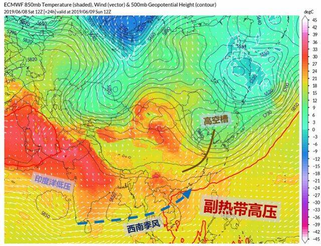 好消息是,高溫天氣馬上就要離開舞臺。在西南季風(fēng)和高空槽的共同排擠下,副熱帶高壓只好見好就收,回到廣闊的海洋上。攜帶大量水汽的西南季風(fēng)由印度洋低壓搭橋引線,源源不斷涌入華南上空,降雨過程一觸即發(fā),端午假期后的天氣說變就變,深圳也將再次進(jìn)入“龍舟水”新一輪龍舟水的活躍時期。