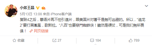 導(dǎo)演王晶此前曾發(fā)微博稱,“復(fù)聯(lián)4之后,華語(yǔ)片再不怕引進(jìn)片,跟美國(guó)片對(duì)著干是無(wú)可逃避的。雖然是硬仗,可是我們無(wú)所畏懼!”在諸如博納影業(yè)和阿里影業(yè)等影視公司的推動(dòng)下,一批優(yōu)質(zhì)國(guó)產(chǎn)片正在登上市場(chǎng)的舞臺(tái)中心,為國(guó)內(nèi)電影大盤(pán)貢獻(xiàn)越來(lái)越多的力量。