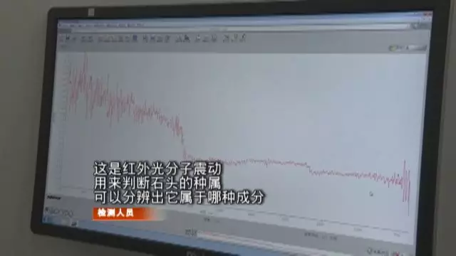 在記者說(shuō)明來(lái)意后,工作人員接過(guò)單先生的石頭進(jìn)入實(shí)驗(yàn)室,首先用小電筒和寶石顯微鏡,進(jìn)行外觀檢測(cè)。然后將石頭放到這臺(tái),叫“傅里葉變換紅外光譜”的儀器,檢測(cè)它的分子結(jié)構(gòu)。