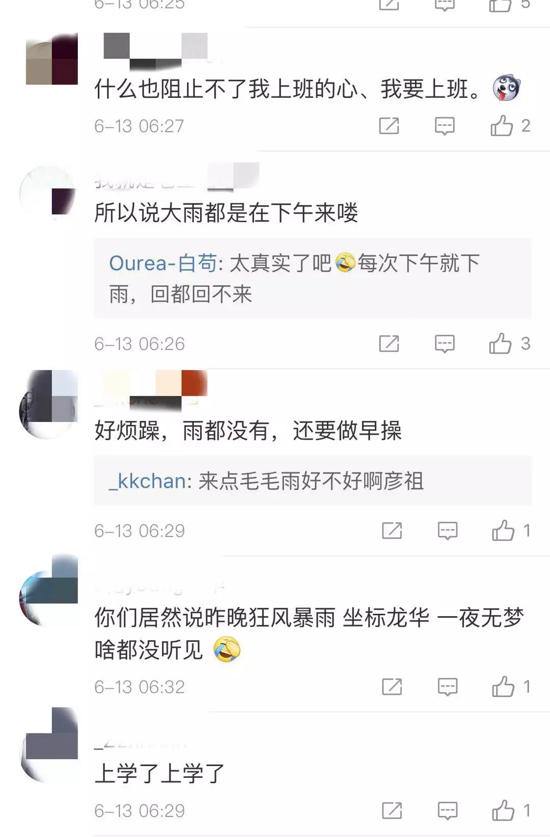 紅暴沒來!今晨正常上班上學(xué)!做好防雨措施!