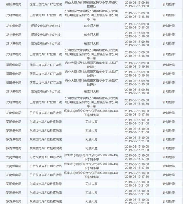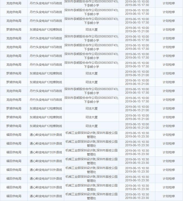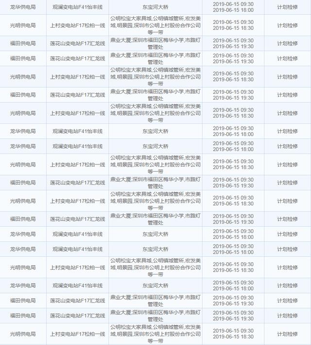 【6月15日停電計(jì)劃】