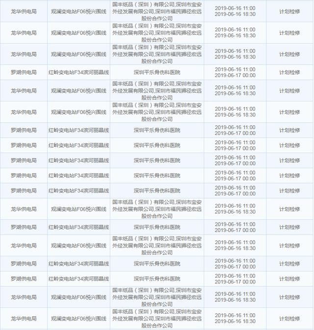 南方電網(wǎng)發(fā)布6月13日至6月16日深圳停電計劃 涉及多個區(qū)