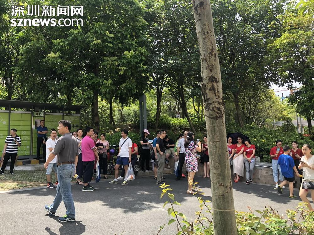 10:35時(shí),2019深圳中考第一科語文即將結(jié)束考試,家長們在等候。