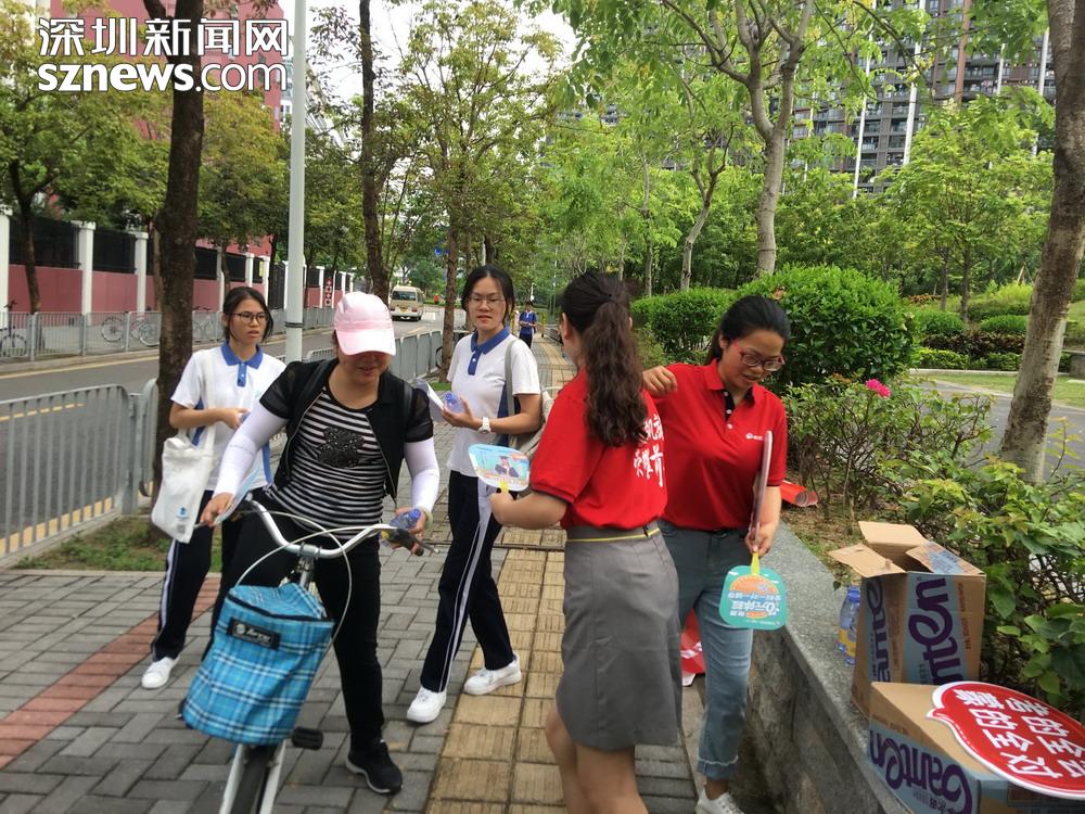記者在深圳高級中學(xué)(集團(tuán))北校區(qū)校門口看到,有家長、老師及教育機(jī)構(gòu)自發(fā)組織到考場外,為考生提供送水、接送等服務(wù)。據(jù)了解,他們是來自龍華區(qū)實(shí)驗(yàn)學(xué)校和深圳高級中學(xué)(集團(tuán)北校區(qū))的老師和考生家長。