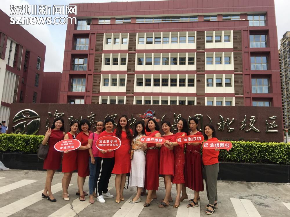 龍華區(qū)實(shí)驗(yàn)學(xué)校的老師以及學(xué)生合影打氣,圖片攝于21日,由龍華區(qū)實(shí)驗(yàn)學(xué)校的何小波老師提供。