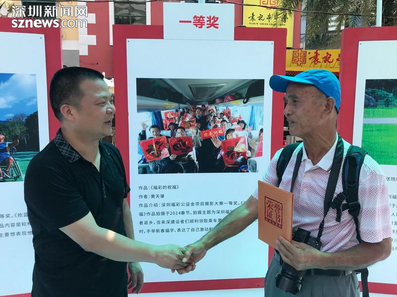 “我從報紙上看見深圳福彩舉辦的返鄉(xiāng)活動,覺得這個做公益獻愛心的活動讓我很感動。我想通過我的照片來彰顯深圳是一個大愛的城市,來讓大家看到深圳福彩的愛心宗旨?!?2歲的黃天肇憑借《福彩的祝福》作品榮獲本次大賽一等獎。作為資深的攝影愛好者,他從深圳福彩舉辦“愛心福彩資助來深建設(shè)者春節(jié)返鄉(xiāng)”活動開始,用相機記錄了十余年,“那個時候我都是用的傻瓜相機拍,獲獎的作品就是我用傻瓜相機拍的,直到這兩年才開始用數(shù)碼相機?!睂τ诖舜握褂[,黃天肇認為深圳福彩組織選出的98張照片,承載著深圳對孤寡老人、弱勢群體、特困戶的關(guān)心,彰顯了深圳人的大愛,也激發(fā)市民通過購彩的方式奉獻愛心,他表示會一直用照片銘記這些珍貴的記憶。