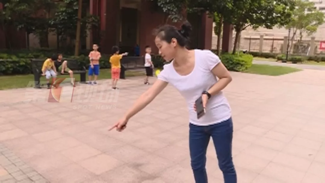 她正帶著兒子在樓下的廣場活動