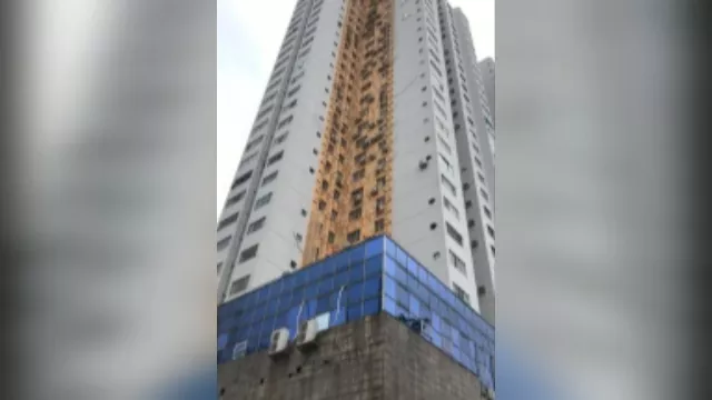 曾女士所在的小區(qū)正在進(jìn)行外立面翻新工程,曾女士說,由于有高空作業(yè),現(xiàn)在居民都不敢從樓下走,因?yàn)楹ε聲魱|西。