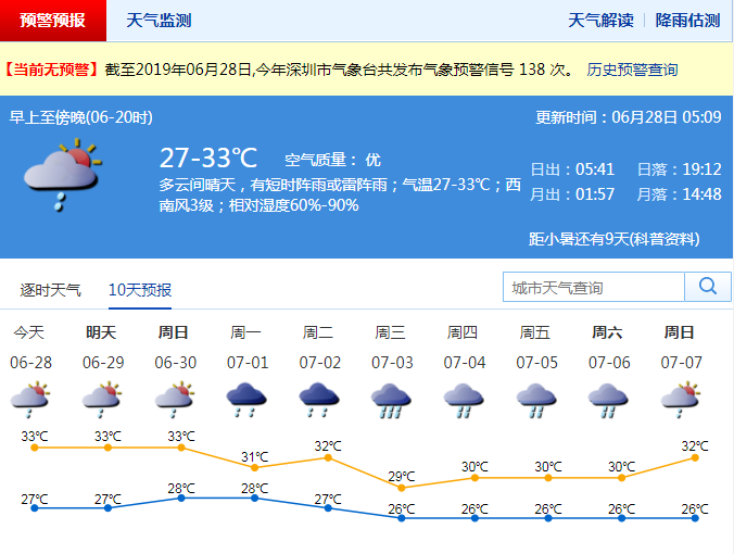 深圳今日天氣炎熱最高溫達(dá)33℃ 但7月1-2日陣雨增多