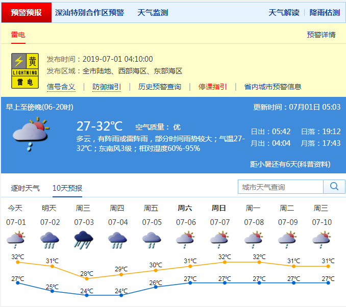 深圳市氣象臺(tái)于2019年07月01日07時(shí)45分在全市取消高溫黃色預(yù),延續(xù)前幾天的高溫天氣暫時(shí)緩解。