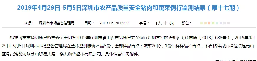 “2019食用農(nóng)產(chǎn)品抽檢第十七期”