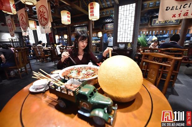 記者在大眾點(diǎn)評(píng)上搜索,楊記隆府排在深圳川菜熱門榜的第一名。餐廳處于金光華六樓,搭乘觀光電梯上到六樓,右手邊就可以看到民國(guó)風(fēng)的楊記隆府,進(jìn)門處有兩位堂倌候著,雙手抱拳來(lái)了一句,“客官幾位?”,小婕瞬間被代入江湖中,有人的地方就有江湖,江湖人必吃江湖菜。