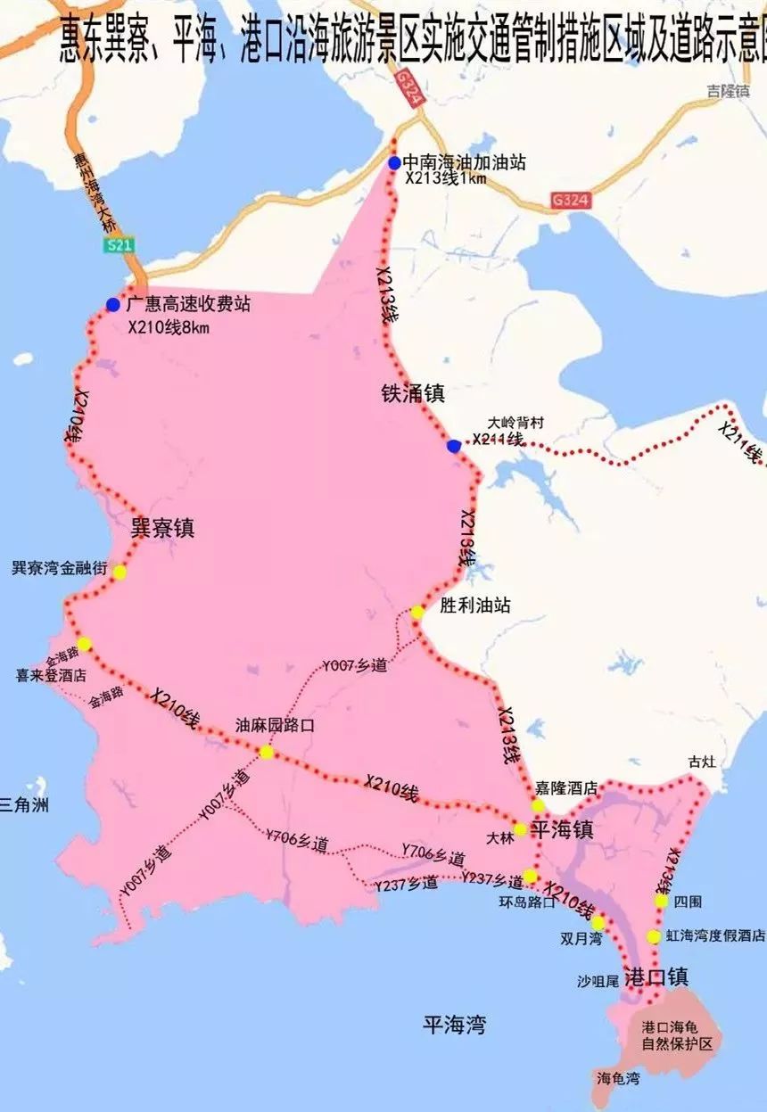 7月1日至8月31日(暑假期間)及中秋和國慶法定節(jié)假日,巽寮、平海、港口沿海景區(qū)全天候?qū)嵭袉坞p號進入限行,違規(guī)罰200扣3分