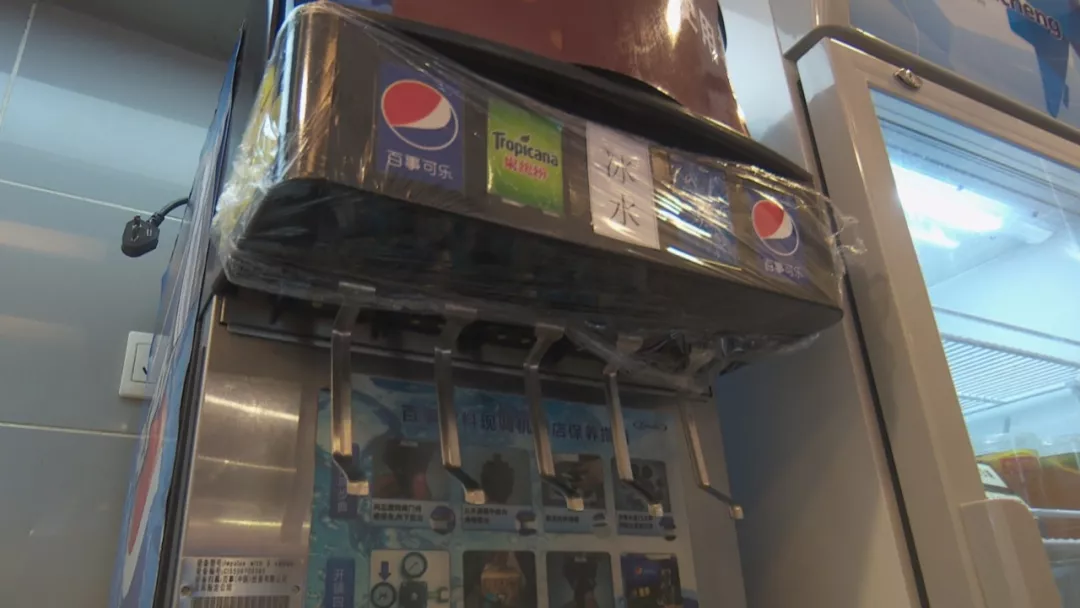 今天中午,記者跟隨轄區(qū)市監(jiān)所執(zhí)法人員來到涉事門店現(xiàn)場檢查。據(jù)了解,2號事發(fā)后,店里的這臺飲料機(jī)已經(jīng)暫停使用,目前飲料出口是用保鮮膜封住的。店方稱,飲料機(jī),每個月由百事可樂廠家人員深層清洗一次,他們的員工是每天對飲料機(jī)的糖漿管道和濾嘴進(jìn)行清洗,都有清洗記錄。