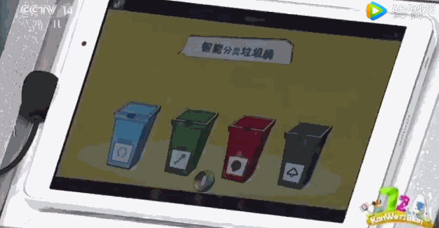 ▲說出垃圾的名字,相對應(yīng)的垃圾桶就會自動打開。