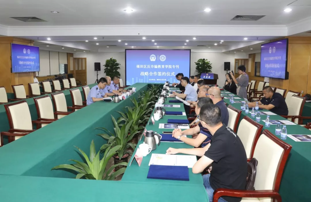 活動現(xiàn)場,福田分局分別與福田區(qū)委政法委、蓮花街道辦、北大深圳醫(yī)院、深圳外國語學(xué)校、中國郵政儲蓄銀行、聯(lián)想有限公司(深圳)、平安大廈物業(yè)、馬成時代廣場、卓越世紀(jì)廣場、山姆會員店、梅林農(nóng)批市場、順豐快遞共12家單位和企業(yè)簽訂了《福田反詐騙教育學(xué)院??瘧?zhàn)略合作協(xié)議》。
