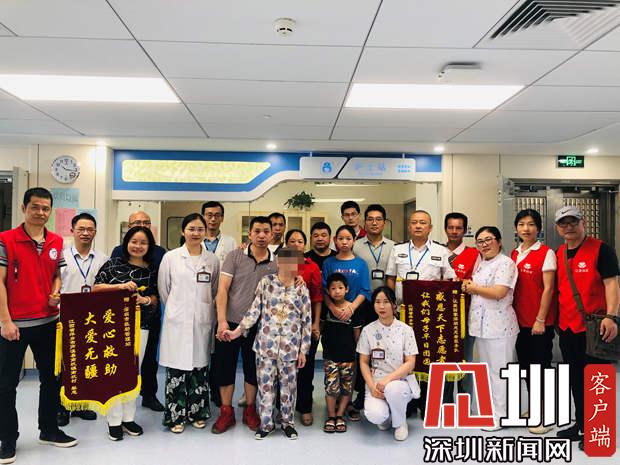 蘇蘭家人與市救助站人員、醫(yī)護人員合影(圖片由深圳市救助管理站提供)