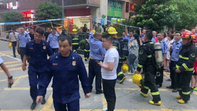 消防人員進入現(xiàn)場參與救援,