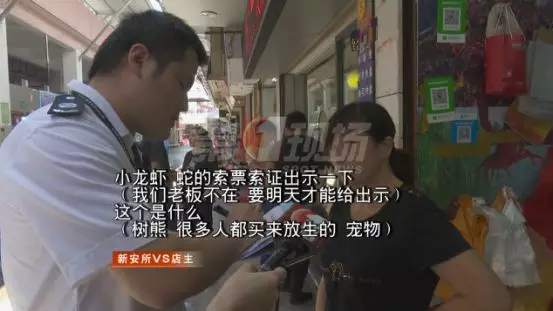 這家店是否真的在售賣國家級保護動物呢?為了核實情況,記者來到寶安區(qū)五區(qū)市場附近,發(fā)現(xiàn)一家售賣小龍蝦的攤檔,確實有一些無法分辨品種的動物在售賣。