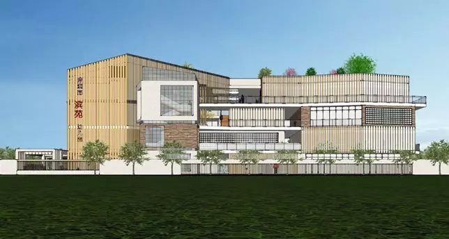 室外環(huán)境設(shè)有滿足孩子們的橡膠跑道、人工草坪,大型娛樂(lè)滑梯設(shè)施等等,各層也設(shè)置了公共平臺(tái),為幼兒提供多樣化的樂(lè)趣,滿足幼兒好奇、好動(dòng)、好模仿的特點(diǎn)。在屋頂設(shè)置了綠植與小型趣味玩具區(qū),讓幼兒接觸自然,喜歡自然。