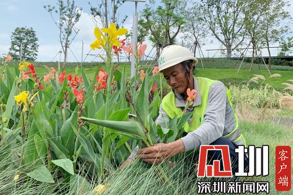 深圳新聞網(wǎng)7月24日訊(見圳客戶端、深圳新聞網(wǎng)記者 王世龍 周斐斐 王志明 羅瑜 董非 李詩萌 實習(xí)生 林怡)謝成生,來自廣西柳州,是深圳前海的一名綠化養(yǎng)護(hù)工人,主要負(fù)責(zé)前海運動公園的綠化養(yǎng)護(hù)工作,目前,他是養(yǎng)護(hù)部的技術(shù)班長。每天早上,他都會早早地來到自己工作的地方,迎著朝陽,對花木進(jìn)行澆水、修剪、施肥,開始一天的勞作。