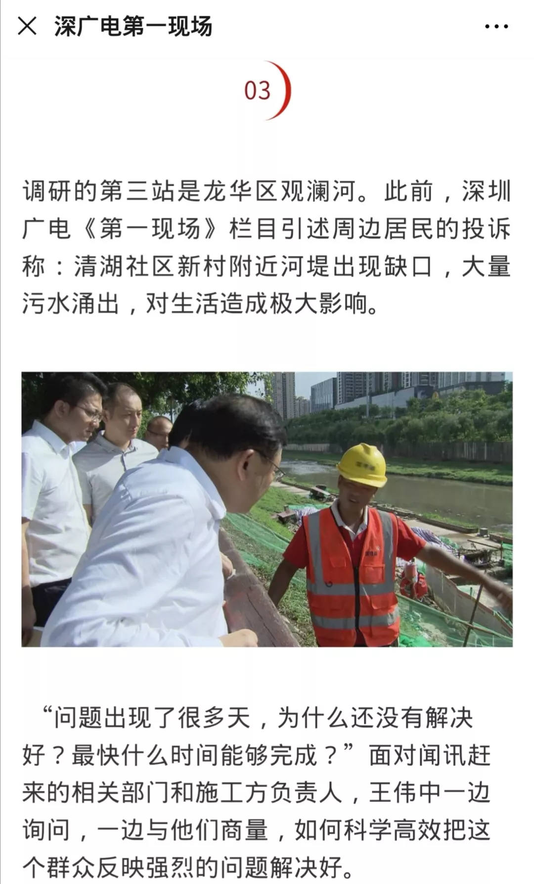 龍華區(qū)水務(wù)局工作人員排查原因后表示之所以這個(gè)地方會(huì)涌出污水,和記者之前去采訪的觀瀾河梅龍大道旁的污水干管塌陷有關(guān),而這一塌陷位置也是本月初省委副書(shū)記、市委書(shū)記王偉中暗訪調(diào)研的其中一站↓↓