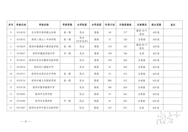 記者梳理發(fā)現(xiàn),目前,深圳市共有16所普高尚有擴(kuò)招及補(bǔ)錄計(jì)劃,補(bǔ)錄人數(shù)2430人,最高補(bǔ)錄分?jǐn)?shù)線為377分。此外,全市還有4所中職學(xué)校與7所中技學(xué)校進(jìn)行擴(kuò)招與補(bǔ)錄,補(bǔ)錄人數(shù)共1367人,最高補(bǔ)錄分?jǐn)?shù)線為316分。