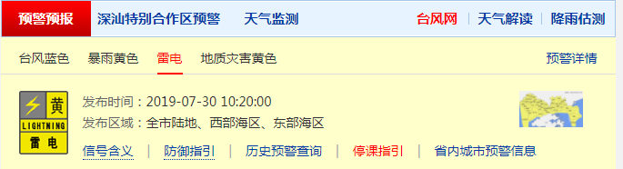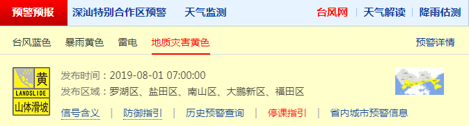 深圳市氣象局發(fā)布四個預警信號