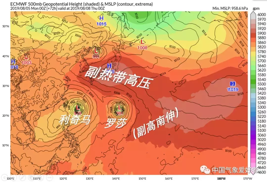 羅莎臺風將會是一個又大又強的臺風。由于個頭太大,副高壓不住,所以它不會來我國,最大可能是緩慢北上登陸日本。不過,羅莎將會阻止副高在利奇馬南側(cè)西伸,并且對利奇馬有互斥作用,是利奇馬臺風的“導演”之一??傮w看來,羅莎將會對利奇馬施加向西的作用力,促使利奇馬更靠近我國。