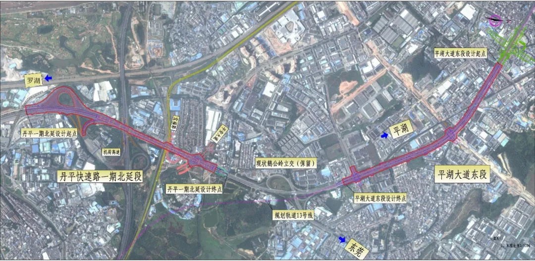 平湖大道東段起于鵝公嶺立交,終于規(guī)劃富安路口,長1.64公里。