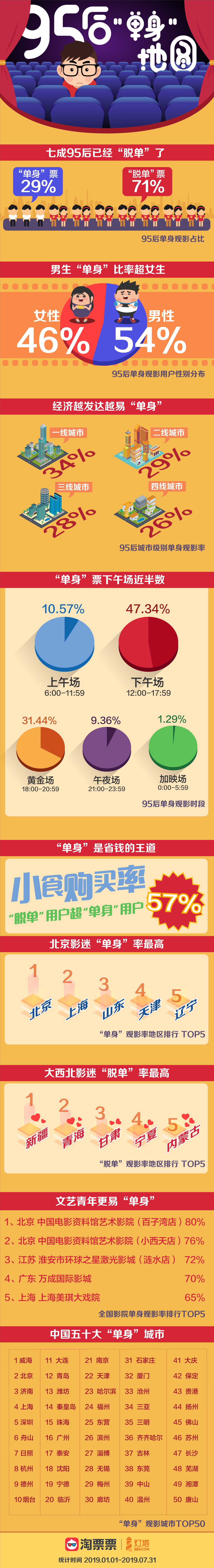 見(jiàn)圳客戶端·深圳新聞網(wǎng)2019年8月7日訊(見(jiàn)圳客戶端、深圳新聞網(wǎng)記者 陳婕)七成95后已經(jīng)“脫單”了、經(jīng)濟(jì)越發(fā)達(dá)地區(qū)“單身”率越高,北京、上海、山東成最“單身”地區(qū)……七夕來(lái)臨之際,用戶觀影決策平臺(tái)淘票票和燈塔專(zhuān)業(yè)版聯(lián)合發(fā)布了針對(duì)觀影人群的《95后“單身”地圖》,以“單身”觀影的維度,去側(cè)面觀察時(shí)下年輕人的情感狀態(tài)。