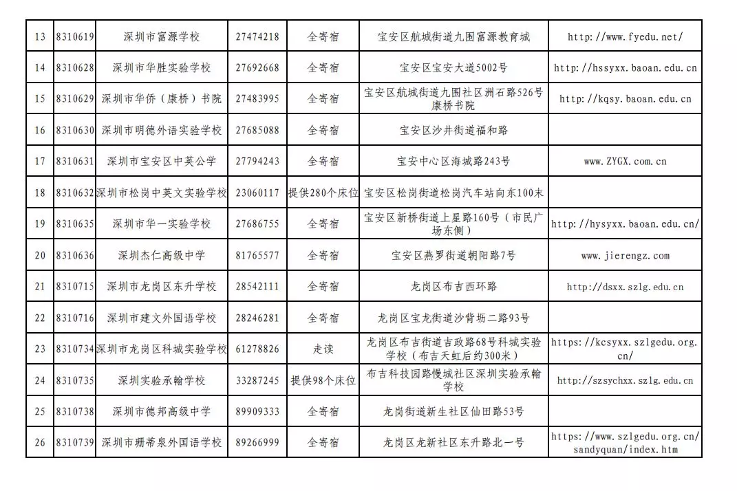 (二)考生可直接到招生學(xué)校報名。招生學(xué)校地址、聯(lián)系電話等信息,可通過附表或市招考辦印發(fā)的《深圳市2019年高中階段學(xué)校招生簡介》查詢。