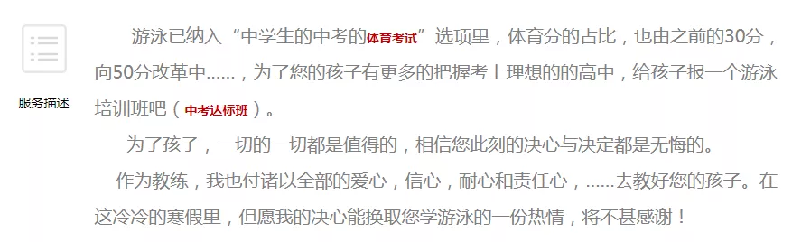 小編了解到,目前的游泳報考生大多是從小在校外自費訓練,多年來需要花費高額學費及投入大量精力。盡管新的中考體育考試辦法尚未確定,但不少商業(yè)培訓機構(gòu)已嗅到商機,迅速做出了反應(yīng)。深圳幾家大型培訓機構(gòu)網(wǎng)站上,針對不同年級適用的中考項目一一列出,最新的《征求意見稿》也被貼在了2022年中考部分,并強調(diào)對擬新增的項目同樣提供相關(guān)服務(wù)。小編網(wǎng)上隨手一搜,到處都是游泳培訓班的廣告: