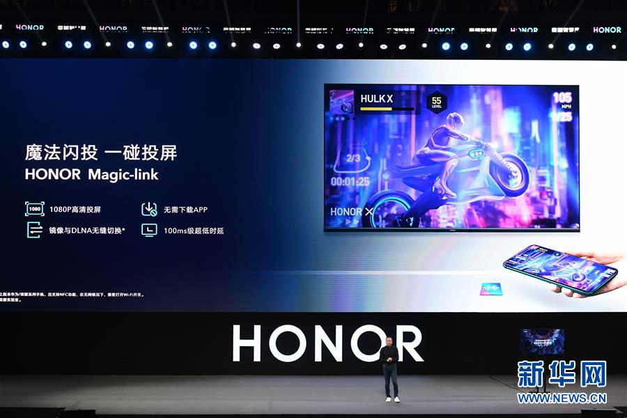 8月10日,華為榮耀總裁趙明在發(fā)布會上介紹榮耀智慧屏。新華社記者梁旭攝