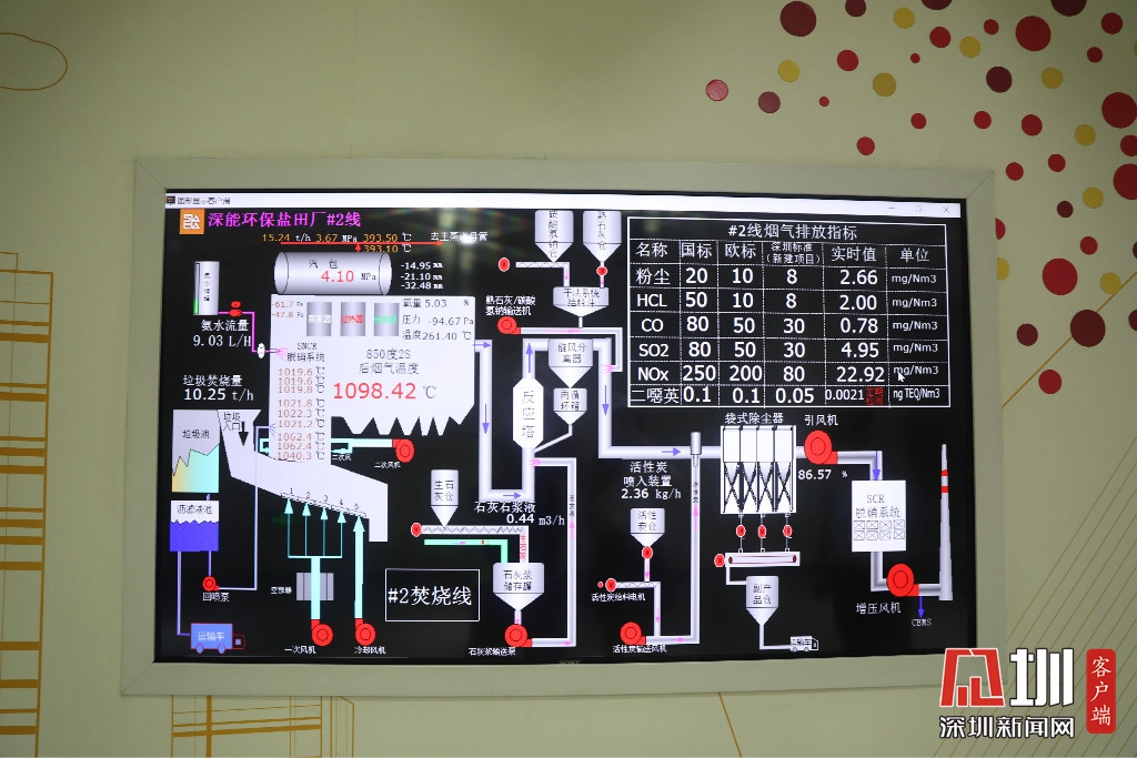 廠內(nèi)還設(shè)有煙氣指標(biāo)電子屏,屏上可以看到粉塵、氯化氫、一氧化碳等多項煙氣排放實(shí)時數(shù)值。據(jù)介紹,深圳實(shí)行的排放標(biāo)準(zhǔn)遠(yuǎn)遠(yuǎn)高于國家標(biāo)準(zhǔn)和歐盟標(biāo)準(zhǔn)。從發(fā)電廠外望去,從煙囪上方看不到一點(diǎn)煙霧。