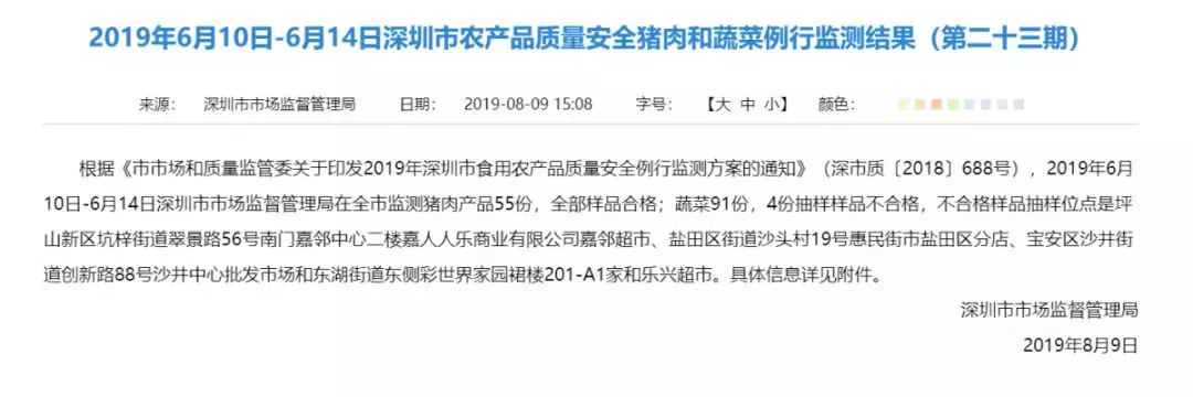 豬肉和蔬菜例行監(jiān)測(cè)結(jié)果