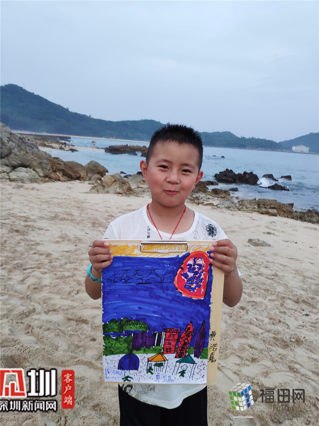 這是我眼中的深圳,既有高樓大廈,也有山和海。我喜歡它,所以我把它畫(huà)下來(lái)”